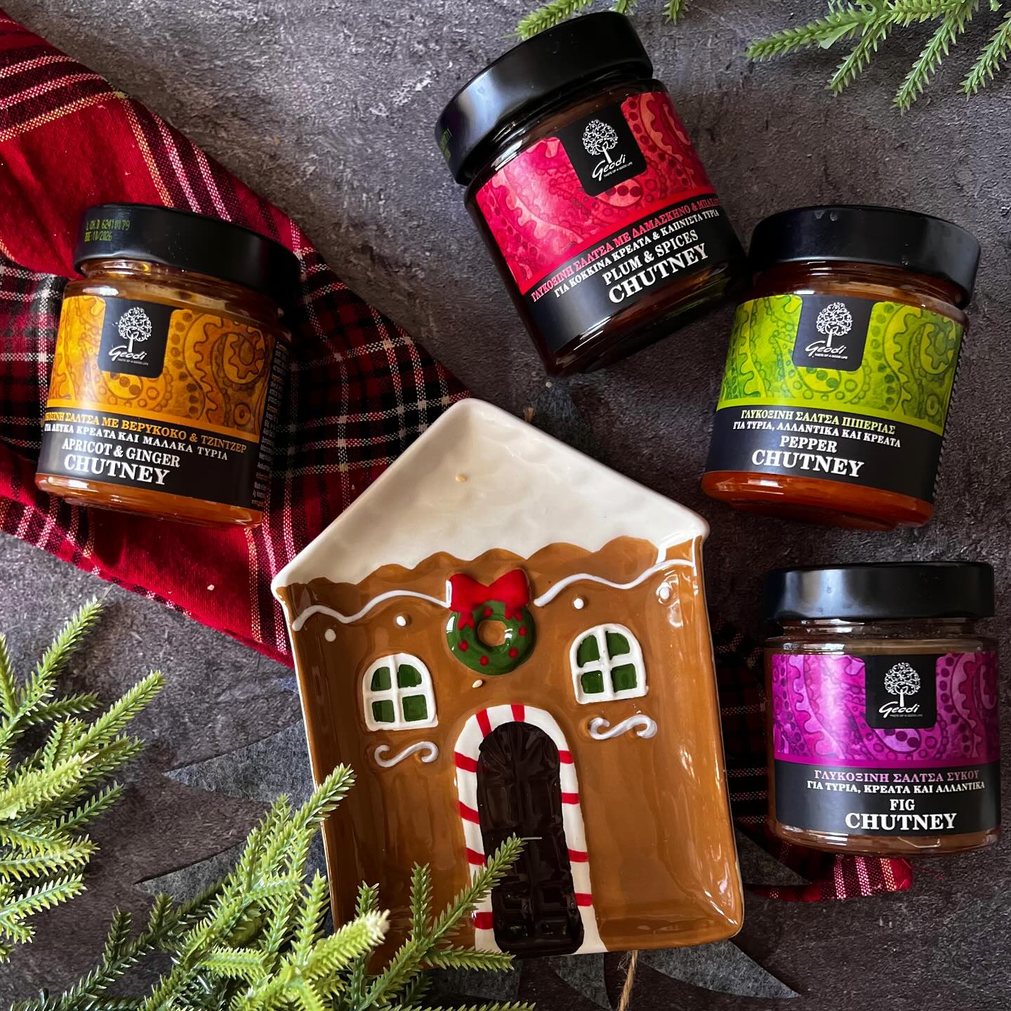 Chutney-urile GEODI sunt fabricate în întregime din fructe grecești și sunt conservate cu oțet (sosuri dulci-acrișoare). Sunt produse naturale, fără conservanți sau aditivi.