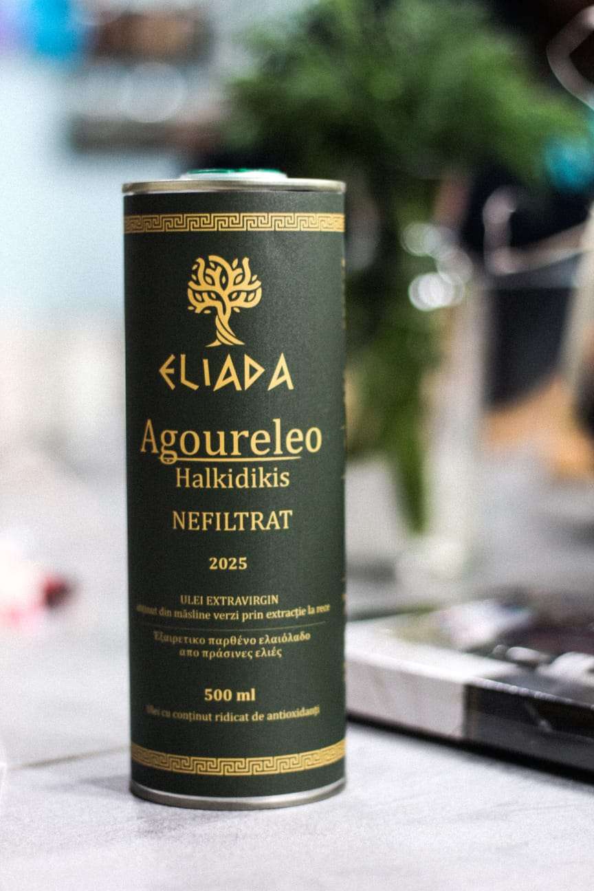 Ulei de masline extravirgin Agoureleo Nefiltrat Eliada 500ml — recolta septembrie 2025, soi Hondroelia DOP, Halkidiki.